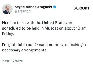 أكد وزير الخارجية عباس عراقجي ان المحادثات النووية مع الولايات المتحدة، ستجرى يوم غد الجمعة بحوالي العاشرة صباحا في العاصمة العمانية مسقط.
