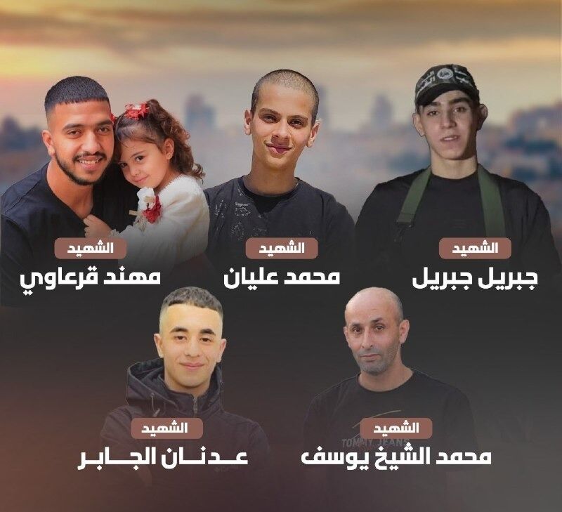 وذكرت مصادر إخبارية أسماء الشهداء الخمسة، وهم: مهند قرعاوي، وجبريل جبريل، وعدنان أيسر جابر، ومحمد الشيخ يوسف، ومحمد عليان. وأشارت إلى أن الشهيد جبريل جبريل كان أحد المفرج عنهم في صفقة التبادل مع أسرى الاحتلال في غزة، خلال الهدنة الأولى في العدوان الجاري على القطاع، وقام بالانضمام إلى كتائب القسام بعد إطلاق سراحه.وأوضحت المصادر، أن الاحتلال قام خلال الأشهر الماضية بمضايقة عائلته، واعتقالها مرارا؛ من أجل الضغط عليه لتسليم نفسه، قبل أن يغتاله اليوم.وبعد استشهاد الفلسطينيين الخمسة، يرتفع عدد الشهداء الذين استشهدوا على يد جيش الاحتلال الإسرائيلي في الضفة الغربية إلى 651، بالإضافة إلى حوالي 5,400 جريح، منذ توسيع جيش الاحتلال الإسرائيلي عملياته في الضفة الغربية، بما في ذلك القدس المحتلة، بالتزامن مع بدء الإبادة الجماعية على قطاع غزة في 7 تشرين الأول/ أكتوبر الماضي، وفقا للبيانات الرسمية الفلسطينية.وبدعم أمريكي، يشن الاحتلال الإسرائيلي حربا مدمرة على غزة، أسفرت عن استشهاد وإصابة نحو 134 ألف شخص، معظمهم من الأطفال والنساء، إضافة إلى أكثر من 10 آلاف مفقود، وسط دمار هائل ومجاعة مميتة.