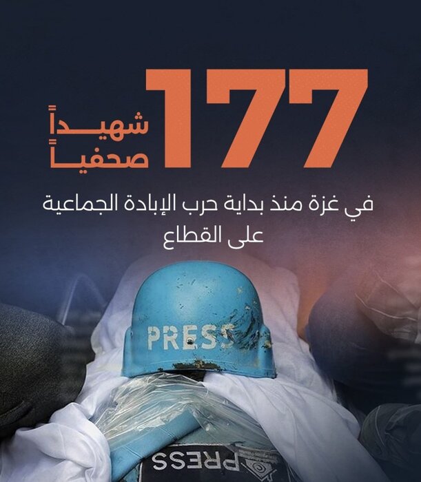 وقال المكتب الحكومي في بيان أمس الاثنين: ارتفاع عدد الشهداء الصحفيين إلى 177 منذ بدء حرب الإبادة الجماعية على قطاع غزة وذلك بعد اغتيال المصور الصحفي في قناة الأقصى الفضائية أيمن محمد رويشد.وأدان المكتب “استهداف وقتل واغتيال الاحتلال للصحفيين الفلسطينيين”، محملاً “إسرائيل” كامل المسؤولية عن ارتكاب “هذه الجريمة”.