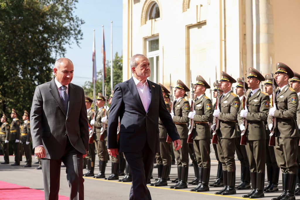 رئيس الوزراء الأرميني يستقبل رسمياً الرئيس الجمهوریة الإسلامیة الإیرانیة بزشكيان