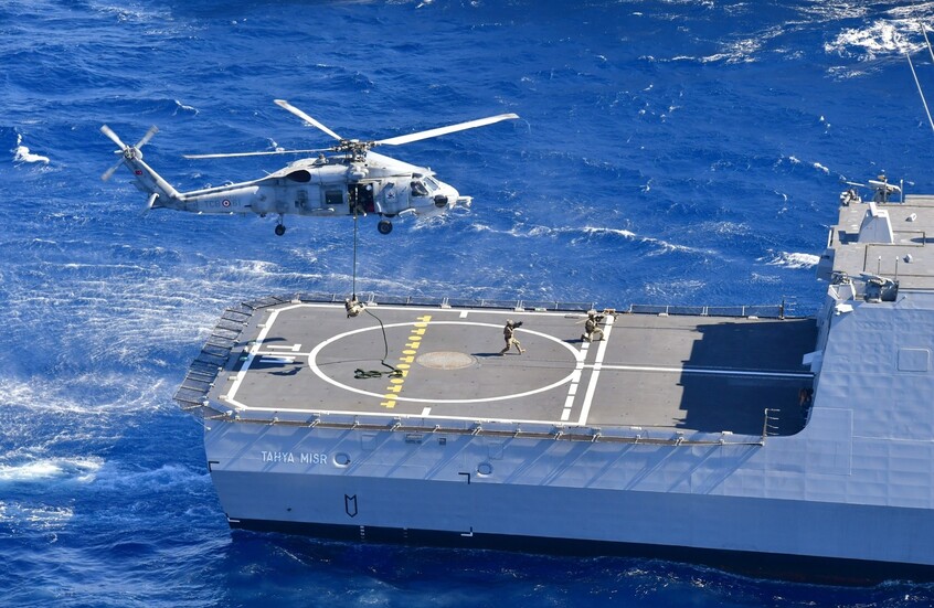 كما نفّذت القوات المشاركة مجموعة من الأنشطة التدريبية البحرية، شملت تبادل الطائرات المروحية على أسطح الوحدات البحرية، وأعمال حق الزيارة والتفتيش للسفن المشتبه بها، فضلاً عن تنفيذ عمليات الإمداد البحري، وتنفيذ تشكيلات إبحار متنوعة عكست درجة عالية من التجانس بين العناصر المشاركة، وقدرتها على اتخاذ المواقع المطلوبة بدقة وسرعة فائقتين. ويهدف التدريب إلى تعظيم الاستفادة من القدرات الثنائية للجانبين، وتبادل الخبرات في مجال تأمين مسارح العمليات البحرية ضد التهديدات المختلفة.