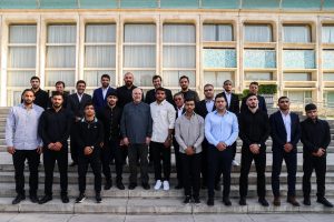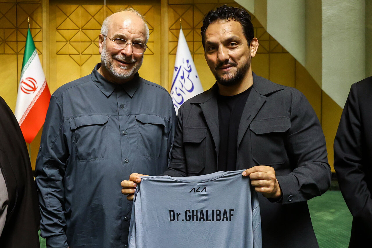 هذا وكان رئيس الاتحاد الايراني للمصارعة عليرضا دبير حاضراً في هذه المراسم ايضاً، واهدى “دبير” قميص المصارعة الوطني الى “قاليباف”.