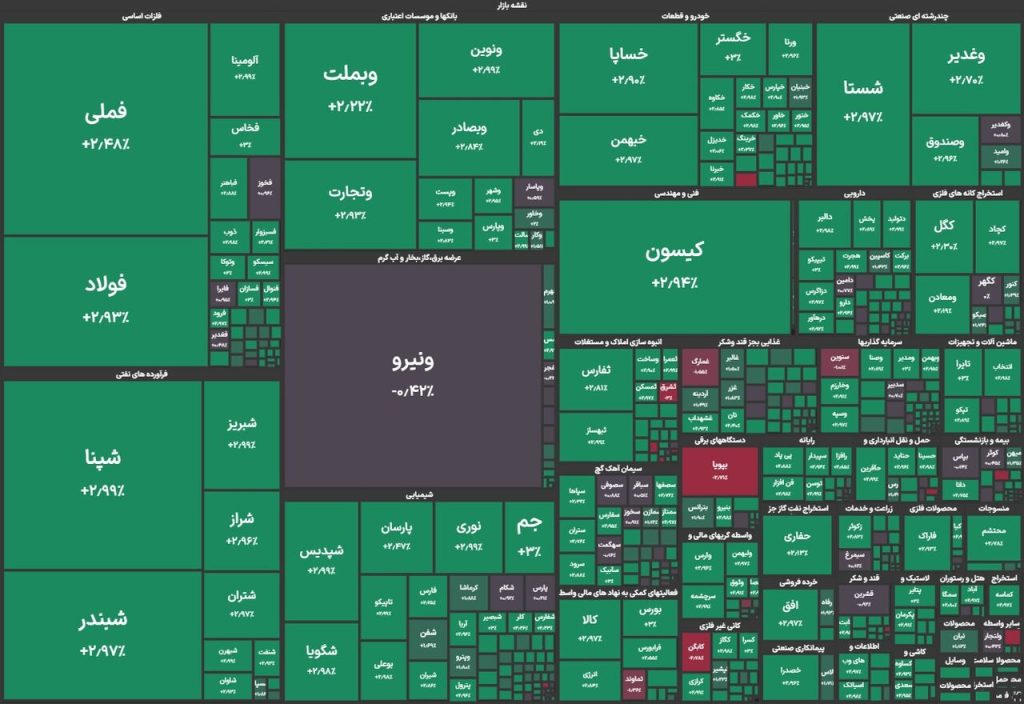 وارتفع المؤشر الإجمالي لبورصة طهران بمقدار 30,384 نقطة، أي ما يعادل 04/1% ليصل إلى 2,956,443 نقطة بحلول الساعة 10:30 صباحاً.