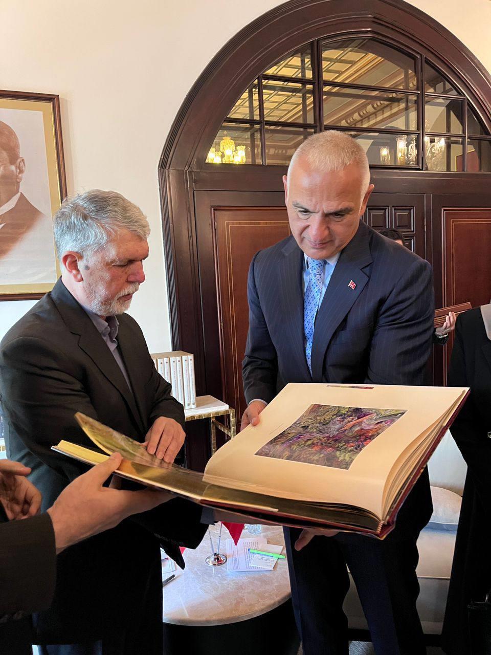 وفي نفس السياق التقى وزير الثقافة، بوزير الثقافة والسياحة التركي «محمت نوري ارسوي»، وخلال هذا اللقاء أكد على أن العلاقات بين إيران وتركيا في المجالات السياسية والاقتصادية والثقافية واسعة ومتينة، مشدداً على أن الشعبين لا يُنظر إليهما كجيران فحسب، بل كأمتين من أسرة واحدة.