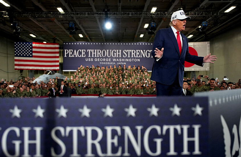 وشدد على أنه “لا توجد أي صواريخ أو معدات مثل هذه في أي مكان بالعالم، لا أحد يصنعها مثلنا، وإذا فعلوا، فإن بحريتنا ستدمرهم وتسحقهم”. كما أعلن أنه وافق على أكبر موازنة دفاع فى تاريخ الولايات المتحدة بقيمة تريليون دولار، وتعهد بعودة الولايات المتحدة لبناء السفن الحربية.