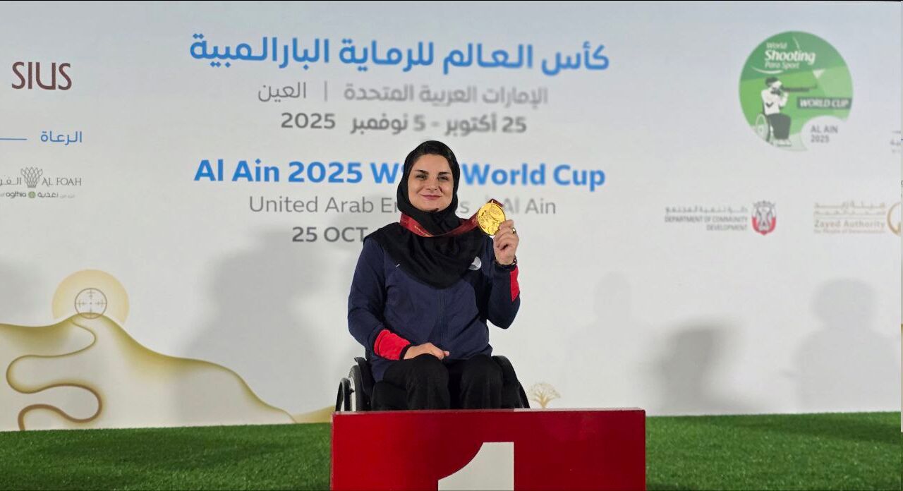 وفي اليوم الثالث من المنافسات الفردية ضمن منافسات كأس العالم للرماية لذوي الاعاقة المقامة بالامارات، سجّلت اللاعبة الايرانية نسرين شاهي رقما قياسيا وقدره 239 لتحرز الميدالية الذهبية وتقف على منصة البطولة، بينما حلت مواطنتها “فائزة احمدي” بالمركز الثالث وحازت على الميدالية البرونزية بعد تسجيل رقم قياسي وقدره 215.6.