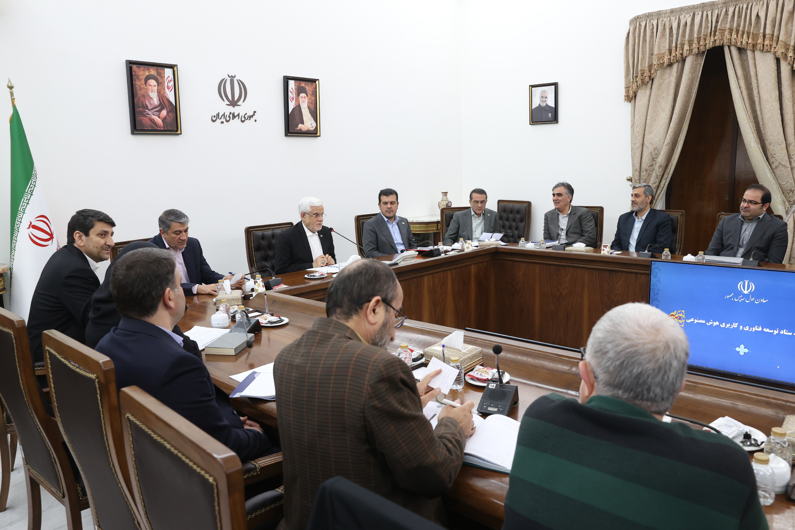 وفي الجلسة الرابعة لمقر تطوير تقنية وتطبيقات الذكاء الاصطناعي، التي حضرها نائب رئيس الجمهورية للشؤون العلمية والتكنولوجيا والاقتصاد القائم على المعرفة، ورئيس منظمة الشؤون الإدارية والتوظيف، ووزير الاتصالات وتكنولوجيا المعلومات، وأمين المجلس الأعلى للفضاء الافتراضي، ومحافظ البنك المركزي، ومسؤولو الأجهزة المعنية، شدد الدكتور محمدرضا عارف على ضرورة استثمار جميع الطاقات الوطنية في مجال الذكاء الاصطناعي من خلال تقسيم عمل وطني منظم، مضيفاً: يجب تعويض التأخر الذي لحق بنا في مجال الذكاء الاصطناعي لنصل إلى المرتبة الأولى إقليمياً، ونحن قادرون على أن نصبح دولة مؤثرة ورائدة في المنطقة.