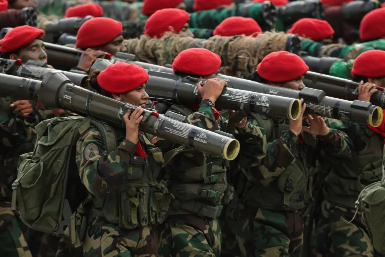 وتشير التقارير إلى انضمام 5 آلاف و600 جندي للجيش الفنزويلي، حيث أقيمت مراسم، السبت، في فويرتي تيونا، أكبر مجمّع عسكري فنزويلي، في العاصمة كاراكاس لضمهم إلى صفوف الجيش.
