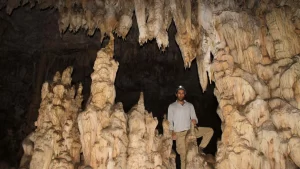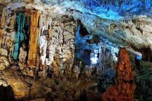 عندما يجفّ الماء الموجود في الحفر، ونظرًا لهشاشة الصخور الجبلية المكوّنة من الحجر الجيري، تقوم المياه بنقل الأملاح إلى داخل الممرات، وعلى مدى قرون تشكلّت هوابط كبيرة جدًا وممرات فريدة من نوعها. سقوط قطرات الماء من الهوابط يمنح جدران الكهف جمالًا ولمعانًا خاصًا، تدل الدراسات على استمرار نمو الهوابط، ما يجعل الكهف مساحةً حيةً تتوسع حتى اليوم، وتتراوح أعمدة الكهف بين متر واحد وخمسة عشر متراً ارتفاعاً.