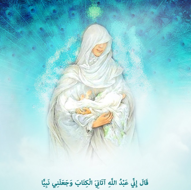 كانت والدته السيدة مريم(س) إبنة عمران، من النساء الحكيمات ومن الشخصيات البارزة. أما والدها عمران، فكان من نسل النبي سليمان(ع)، ومن كبار العلماء، معروفاً بالتقوى والعبادة. وهكذا جاء ميلاد النبي عيسى(ع) بأمرالله تعالى بطريقة إعجازية من أم طاهرة عذراء، ثم تكلّم في المهد مبشراً بنبّوته.
