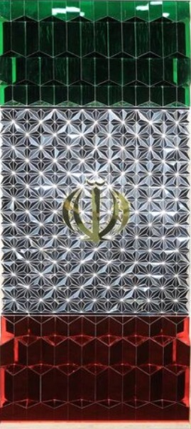 العمل يتحدث بلغة مألوفة، إذ يستحضر ألوان العلم الإيراني الثلاثة، بوصفه رمزاً رسمياً للجمهورية الإسلامية الإيرانية، ضمن نظام هندسي مستمد من الفن الإسلامي. لكن ما يرفعه فوق مستوى التمثيل الرمزي هو السعي