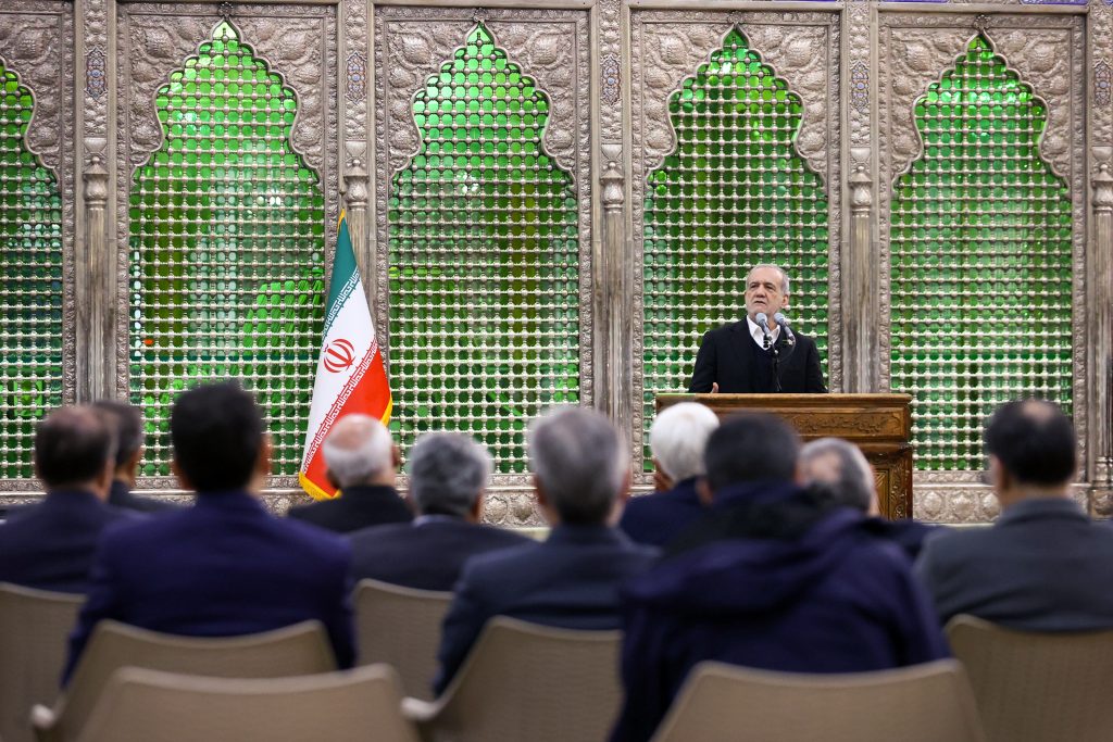 وبالاشارة الى تواطؤ الادارة الامريكية والكيان الصهيوني والأوروبيين في احداث العنف والارهاب الأخيرة التي شهدتها ايران، صرح الرئيس بزشكيان ان هؤلاء كانوا يسعون الى تمزيق ايران و التحريض على الانقسام و اثارة الفتنة والكراهية بين ابناء الشعب الايراني حيث قاموا بخداع بعض الأبرياء بأكاذيبهم وجروهم الى الشوارع لإفتعال اعمال عنف وتخريب.