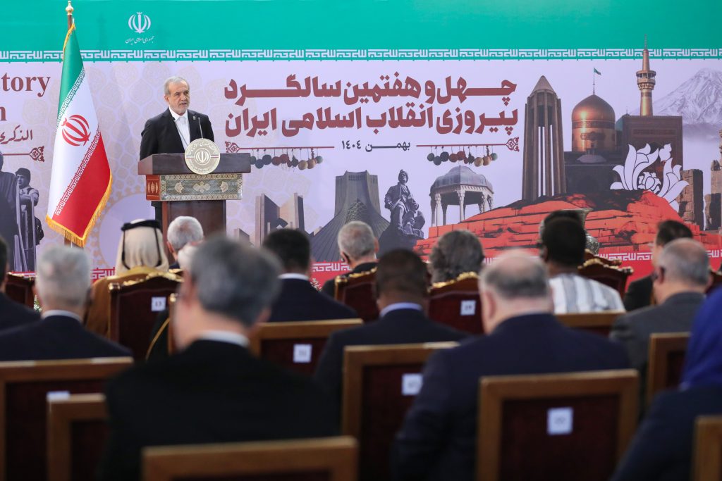 ويمثل هذا اليوم بداية مرحلة جديدة قائمة على الديمقراطية الدينية في إيران. ويسعدنا اليوم أن نحتفل بحضوركم بالذكرى السابعة والأربعين لهذا اليوم المجيد. ومن موقعي كرئيس للجمهورية الإسلامية الإيرانية، أتقدم بالتحية إلى أبناء شعبي الصبور والحازم، تقديراً لشجاعتهم وتضحياتهم وتكاتفهم وصبرهم طوال المرحلة التي أعقبت انتصار الثورة، وأُعرب عن احترامي العميق لهم.