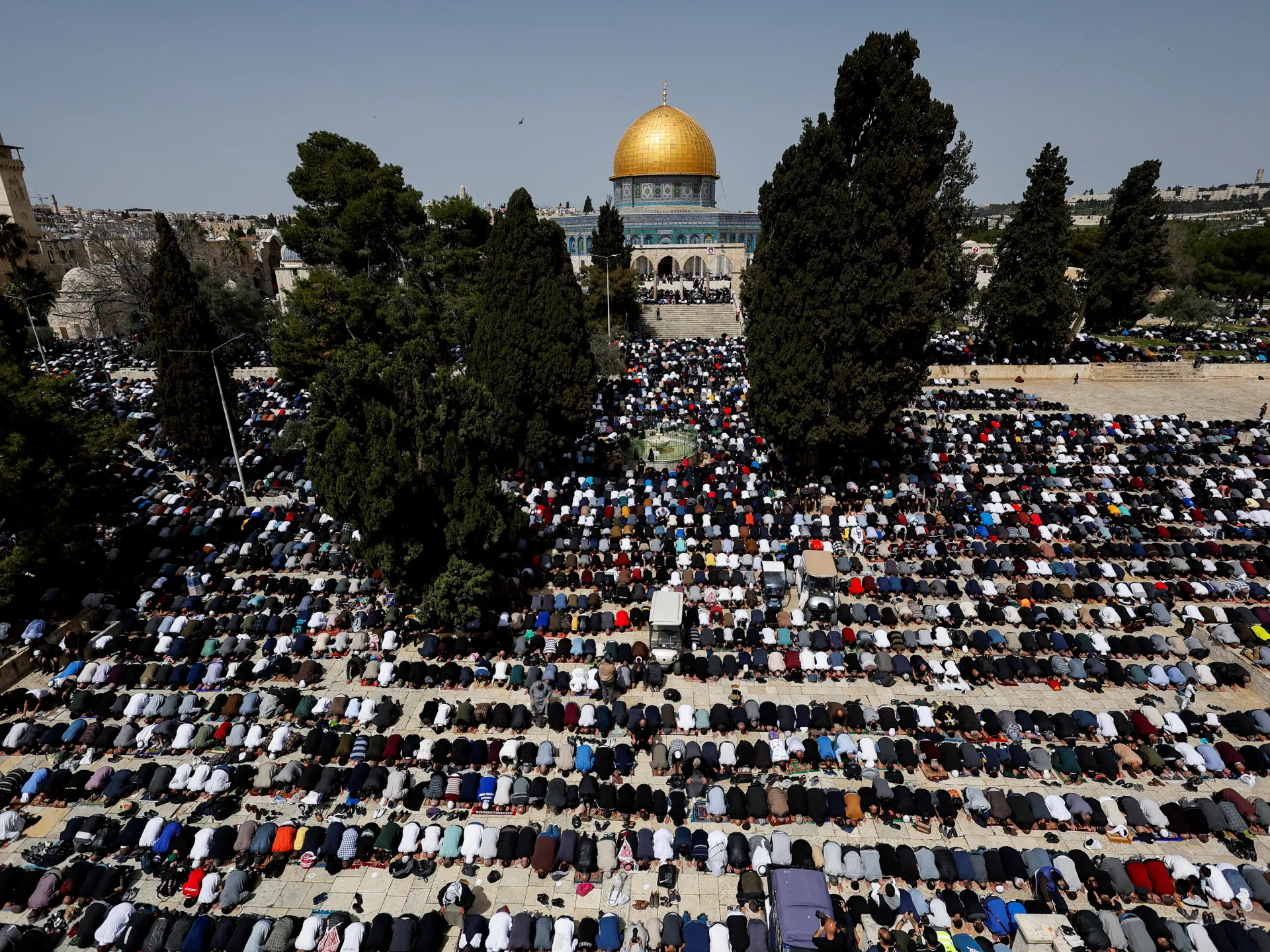 أدّى آلاف الفلسطينيين صلاة الجمعة الأولى من شهر رمضان المبارك في المسجد الأقصى، وسط إجراءات أمنية مشددة وتقييدات واسعة فرضتها سلطات الاحتلال الصهيوني، استهدفت بشكل خاص المصلين القادمين من الضفة الغربية.
