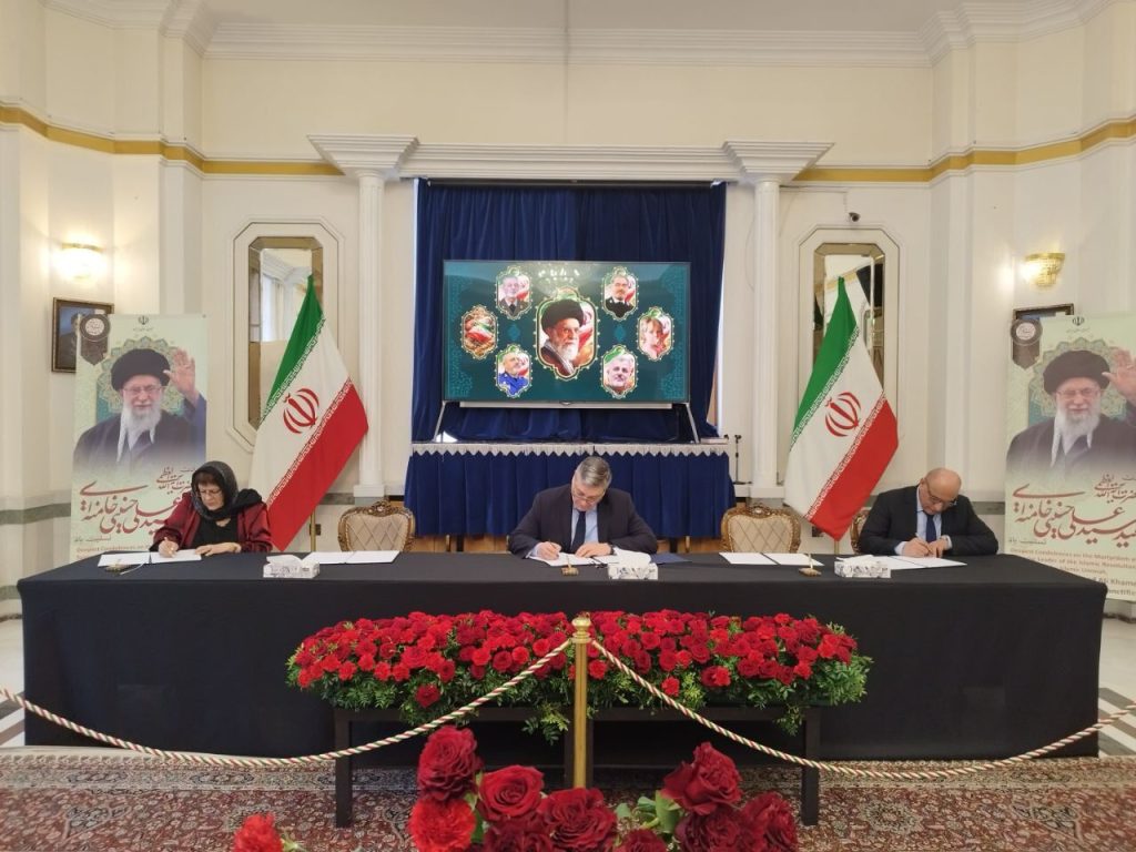 وقد ادى المتوافدين الى السفارة الايرانية في موسكو ، اليوم الخميس، تحية اجلال واكبار لروح قائد الأمة الإمام الشهيد آية الله الخامنئي (قدس سره) وللشهداء القادة والمواطنين ،وخاصة التلميذات الشهيدات في مدرسة ميناب، الذين ارتقوا اثر العدوان الصهيو-امريكي على ايران.