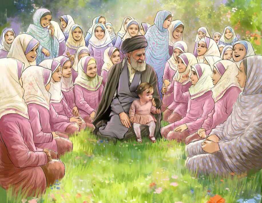 تم إزاحة الستار عن جدارية “الأب وبناته” للفنان “محمدرضا دوست محمدي” في قاعة “أنديشه” بمركز الفن بطهران (حوزه هنري)، وهي عبارة عن رسم صورة قائد الثورة الإسلامية الشهيد الإمام الخامتئي(رض) إلى جنب فتيات مدرسة ميناب الشهيدات، وحفيدته الصغيرة زهراء البالغة من العمر 14 أشهر.