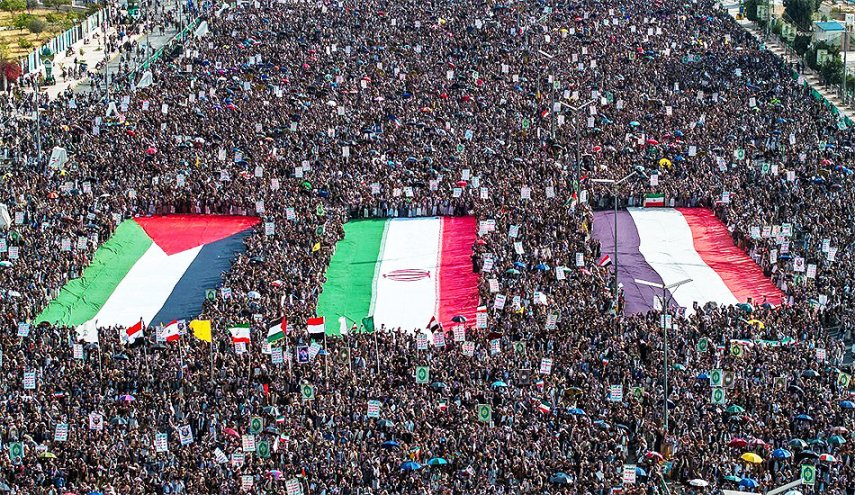 كما قدّم المتظاهرون التهنئة للجمهورية الإسلامية الإيرانية، مؤكدين أن هذا النصر يمثل تحولاً جوهرياً في مسار الصراع مع العدو الصهيوني في المنطقة، وجددوا التأكيد على دعمهم المطلق للشعب الفلسطيني في قطاع غزة والضفة الغربية ووقوفهم إلى جانب لبنان ومقاومته.