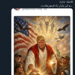 قام صالحي قام في تدوينة على حسابه الشخصي في منصة “إكس” للتواصل الاجتماعي بنشر صورة لـ”ترامب”، مؤكدا : لقد بات الرئيس الامريكي ترامب ملكاً لنفسه، والآن يرى نفسه “المسيح ترامب”، ويبدو أنه لا يفصله عن ادعاء الألوهية سوى خطوة واحدة! .. وهذه هي نهاية طريق الفراعنة.