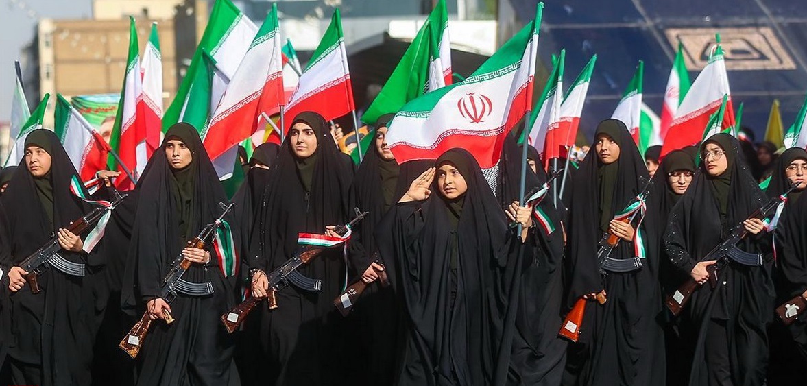 حضرت الفتيات الإيرانيات في مسيرة تحت عنوان «دختران جان فداي ایران» أي «فتيات إيران الفدائيات»، تعبيراً عن روح التضامن والاستعداد للدفاع عن الوطن في الظروف الراهنة.