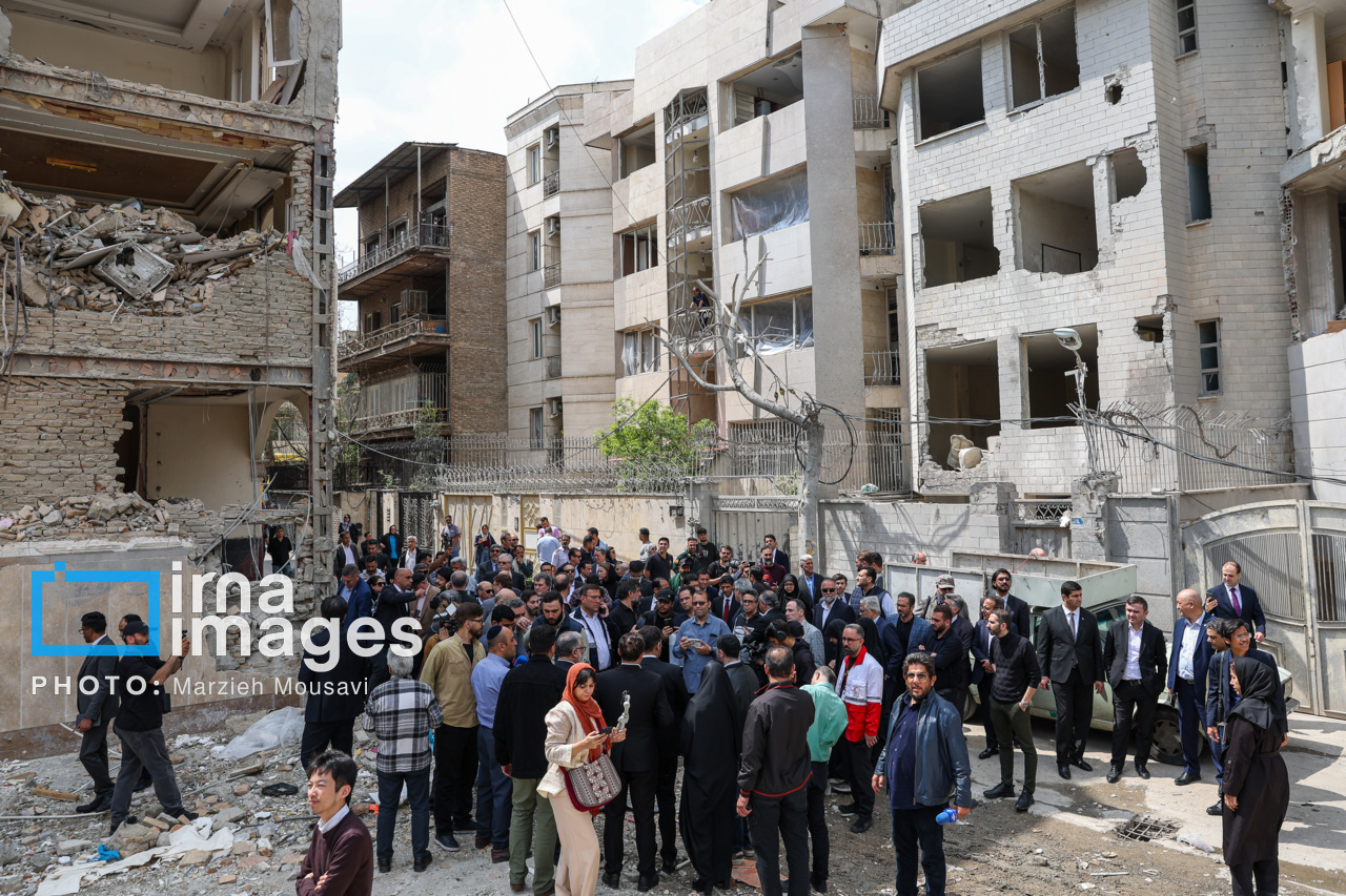 وقامت الهيئات والبعثات الدبلوماسية المقيمة في إيران ومختلف مسؤولي السفارات، الإثنين، وباستضافة محافظة طهران، بزيارة المناطق المتضررة من الهجمات في العاصمة، وذلك بهدف الاطلاع على الأدلة الملموسة لأبعاد العدوان والآثار الإنسانية والبنيوية الناجمة على الاعتداءات الأخيرة.